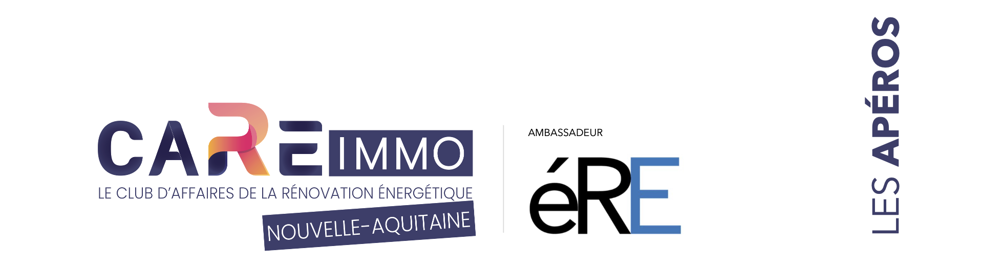 Pour cette 1ère édition des Apéros de la réno CARE Immo Nouvelle-Aquitaine, nous sommes heureux de vous inviter à découvrir le Club et aurons le plaisir de fêter les 4 ans de notre ambassadeur "èRE", l'école de la Rénovation Énergétique !