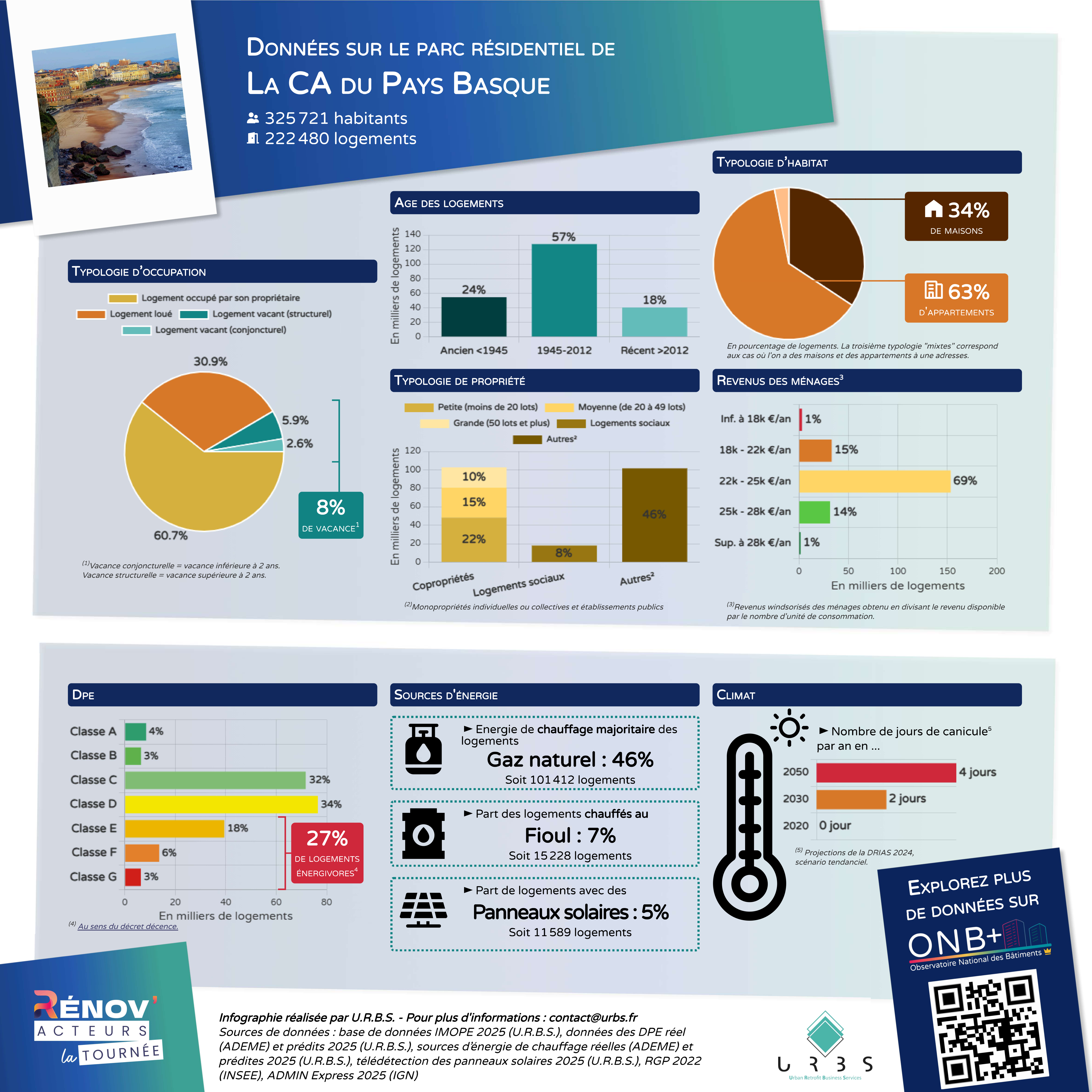 Sur le littoral basque, la métropole de Biarritz se distingue par un parc marqué par la pression des résidences secondaires et les enjeux climatiques côtiers. À travers ses dispositifs d’amélioration et de rénovation de l’habitat, la Communauté Pays Basque accompagne la transformation des logements pour gagner en performance et en confort d’été, tout en engageant la végétalisation et la rénovation de ses écoles, comme au Reptou, afin d’adapter durablement le territoire aux vagues de chaleur.